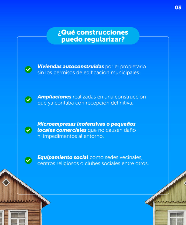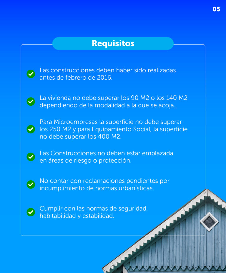 - Obras de carácter no estructural al interior de la vivienda, elementos exteriores sobre puestos que no requieran cimientos.