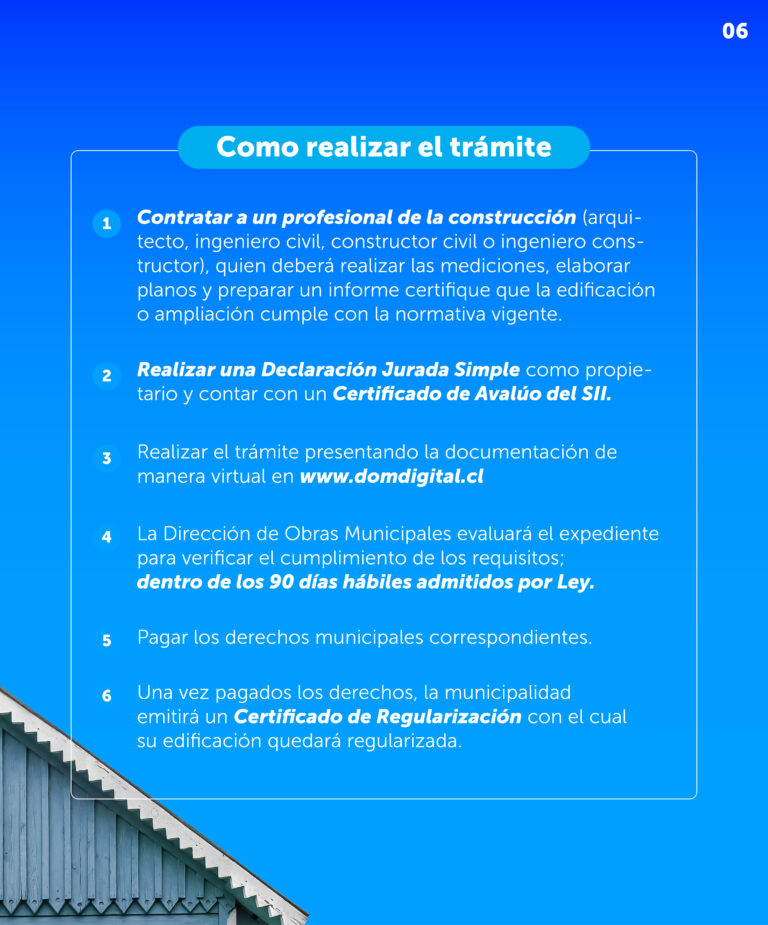 - Velar por el cumplimiento de las disposiciones de la Ley General de Urbanismo y Construcciones, del Plan Regulador Comunal y de las ordenanzas correspondientes.